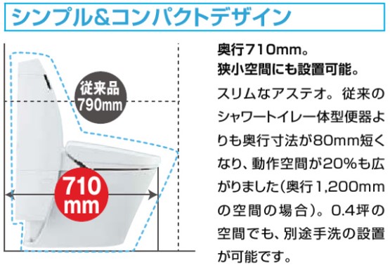 LIXILの「アステオ」シリーズは、タンク付きトイレでありながらコンパクトさにこだわった商品です。