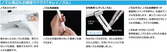 「ノ6ズルシャッター」機能により、不要な際にはノズルを収納します。これにより男性の小用時などにノズルが汚れる心配がありません。