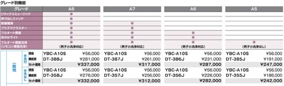 | トイレの機能 | A8 | A7 | A6 | A5 |