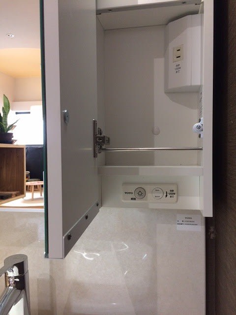 そして、スイッチは鏡裏に配置されており、鏡が閉じたままでもスイッチが押せるようになっています。