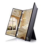 Luuhann 鏡 スタンドミラー 折りたたみ式の三面鏡 ハートの形をしたLEDライトが8個 角度調整可能化粧鏡