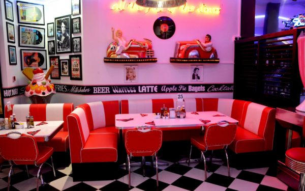 アメリカンレトロスタイルとは、50’s60’sのアメリカンダイナー(プレハブ式レストラン)をイメージしたポップで賑やかなテイストのスタイル。昔のアメリカ映画に出てくるような、いかにもアメリカンな感じが好きな人にはたまらないようです。ハンバーガーとポテトをこーいうところで食べると美味しそうですね。