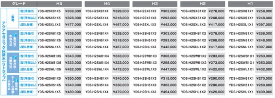 さらに、各タイプは機能の多さによって「H5」「H4」「H3」「H2」「H1」という5種類のグレードに分かれています。