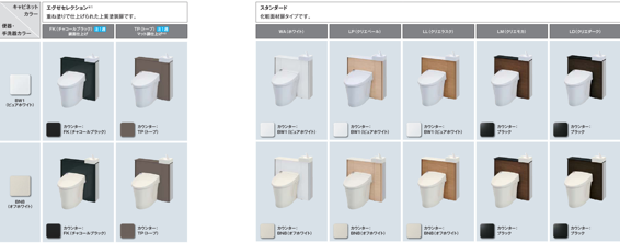 LIXILのトイレ「リフォレ」シリーズのカラーバリエーション
